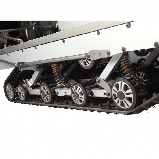 Sistema de trilha de borracha duplo fornece super flutuação na neve profunda e fresco.
